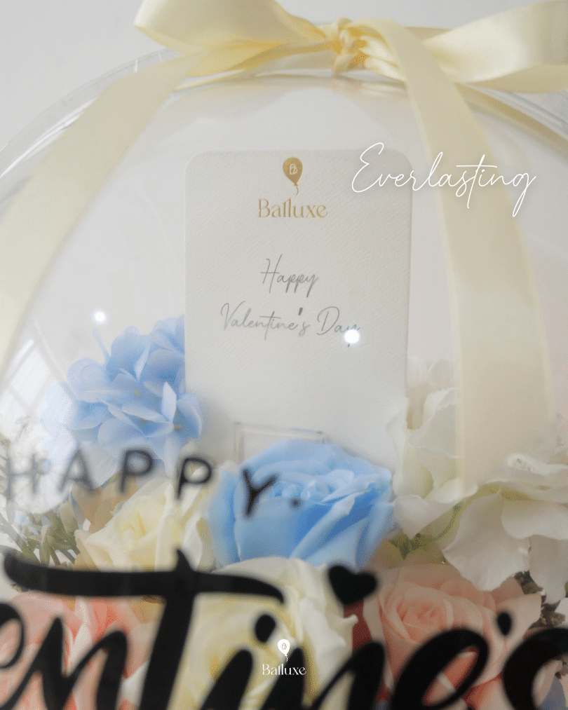 Enchanted is a balloon that is non-deflated, there are premium artificial flowers and greeting cards inside it.
