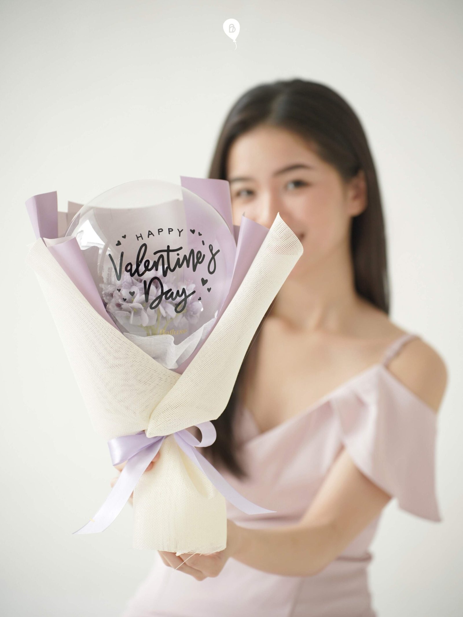 You can customize the text on balloon and the color theme for artificial flowers, and the wrapping