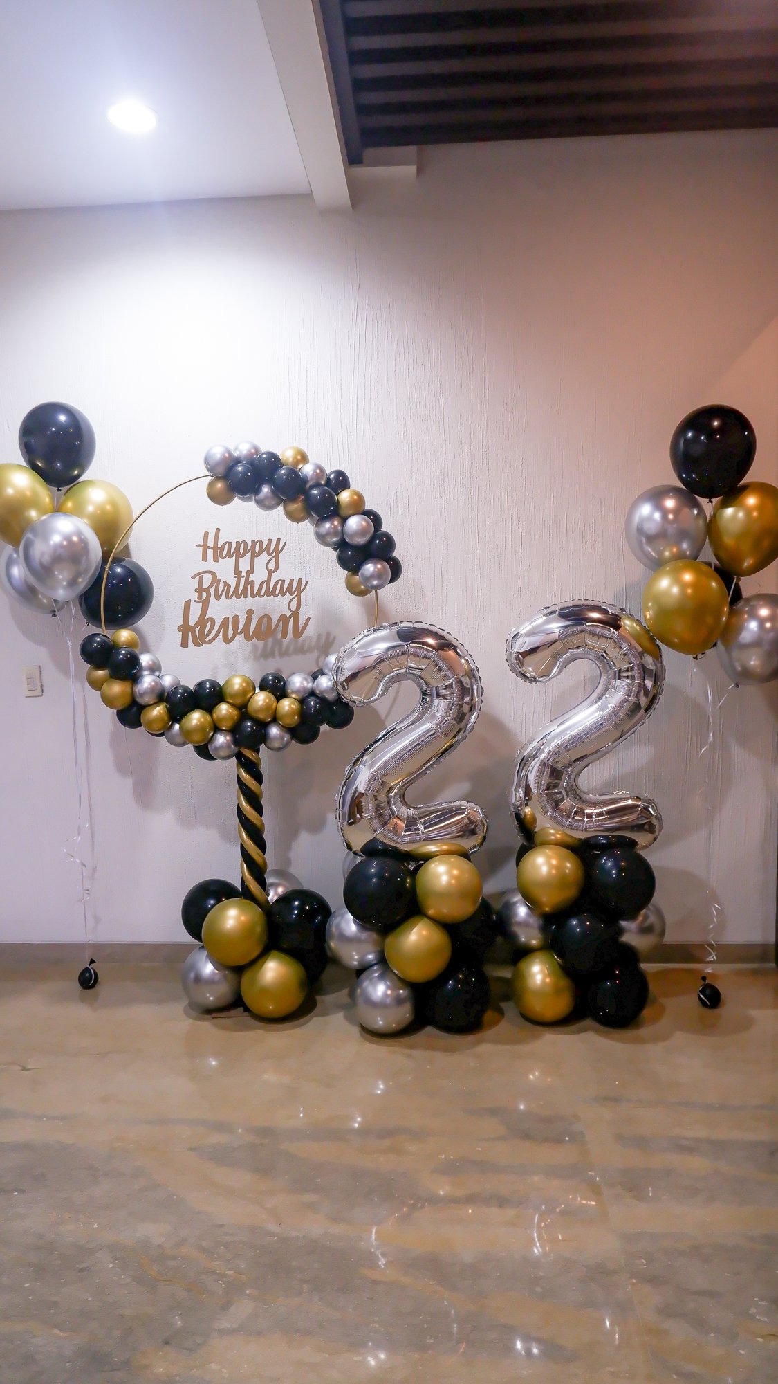 you can customize text in standing loop, choose number foil balloons and choose any theme colours.