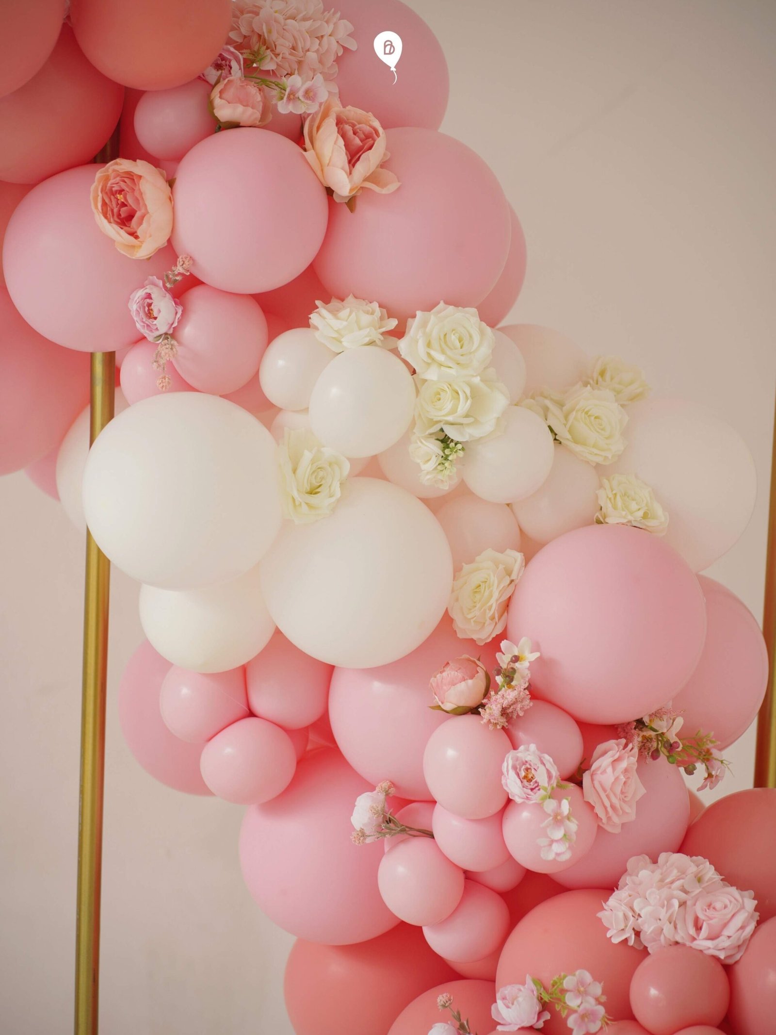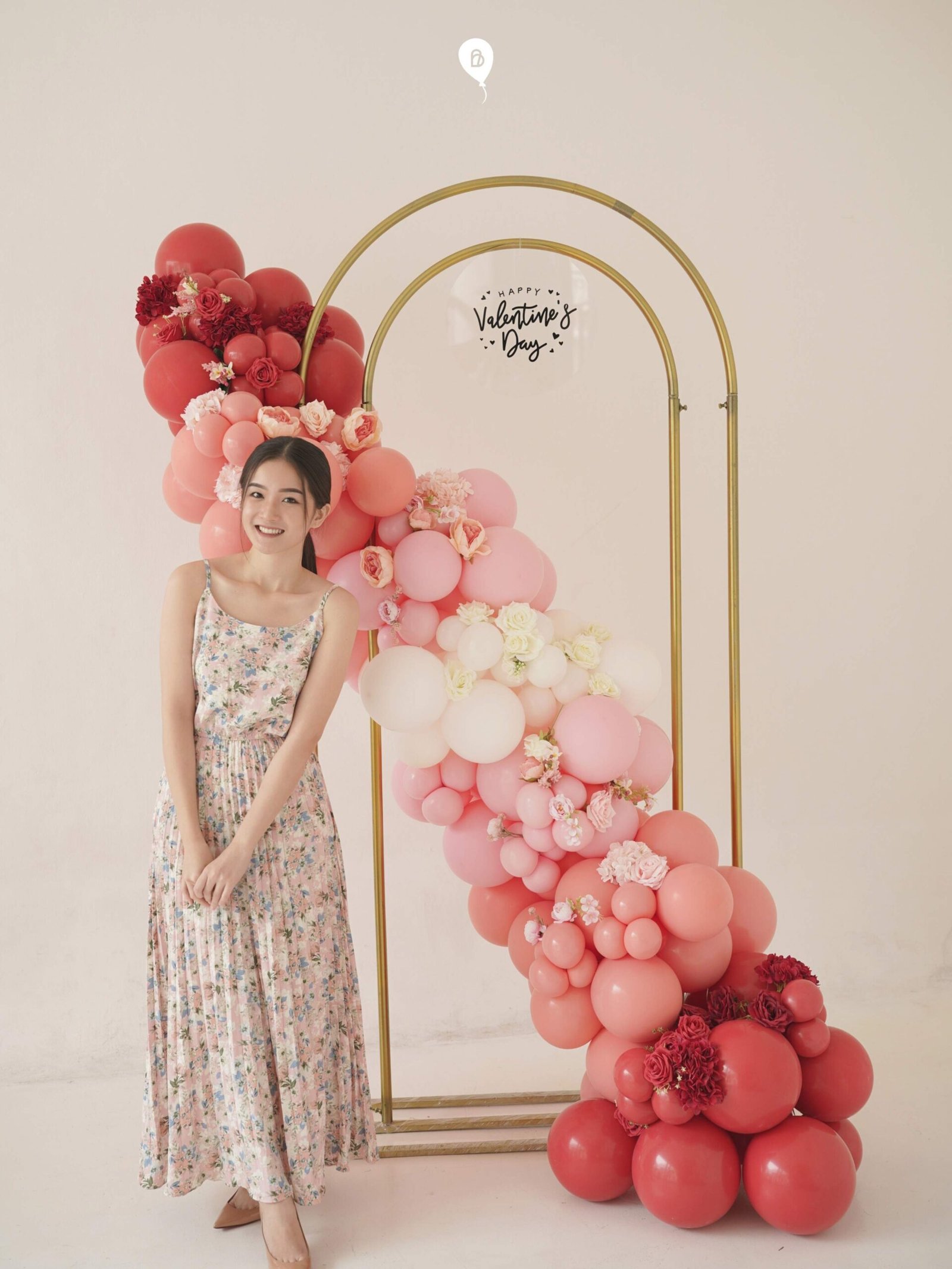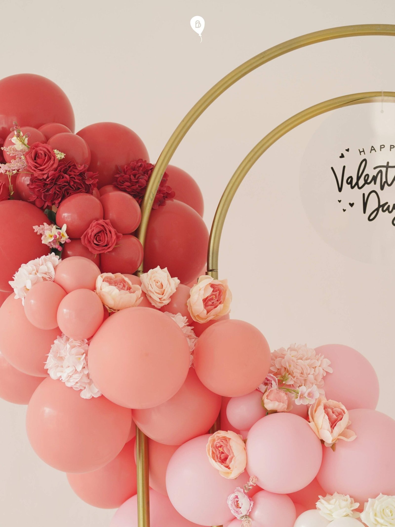 Red-to-pinkish balloon arch decoration