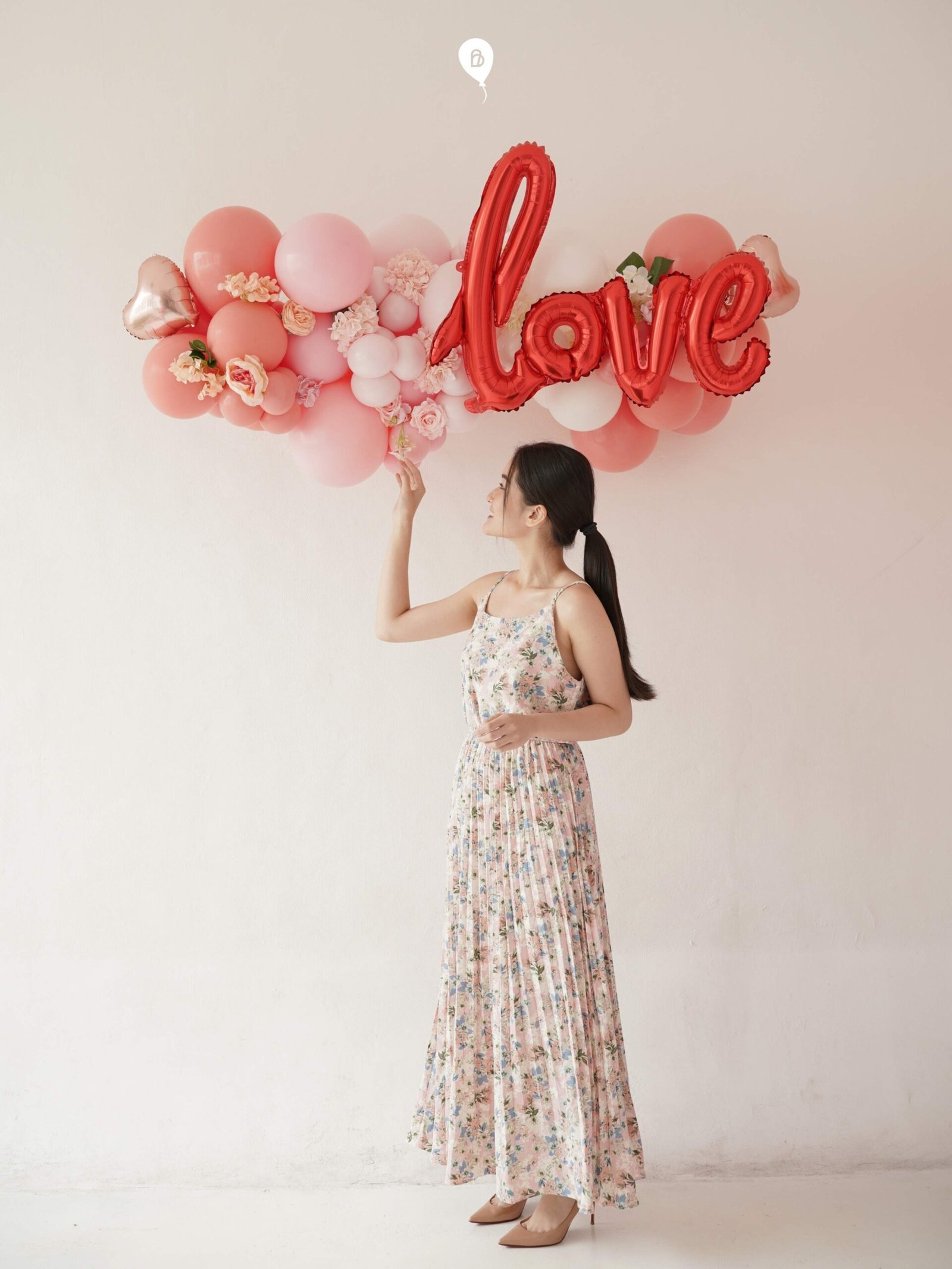 this Garland balloon is combination of our premium colour balloons, artificial flowers and love foil balloon.